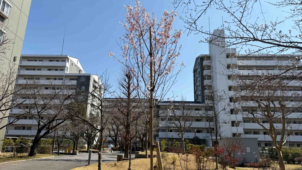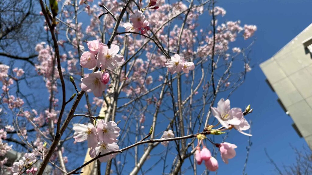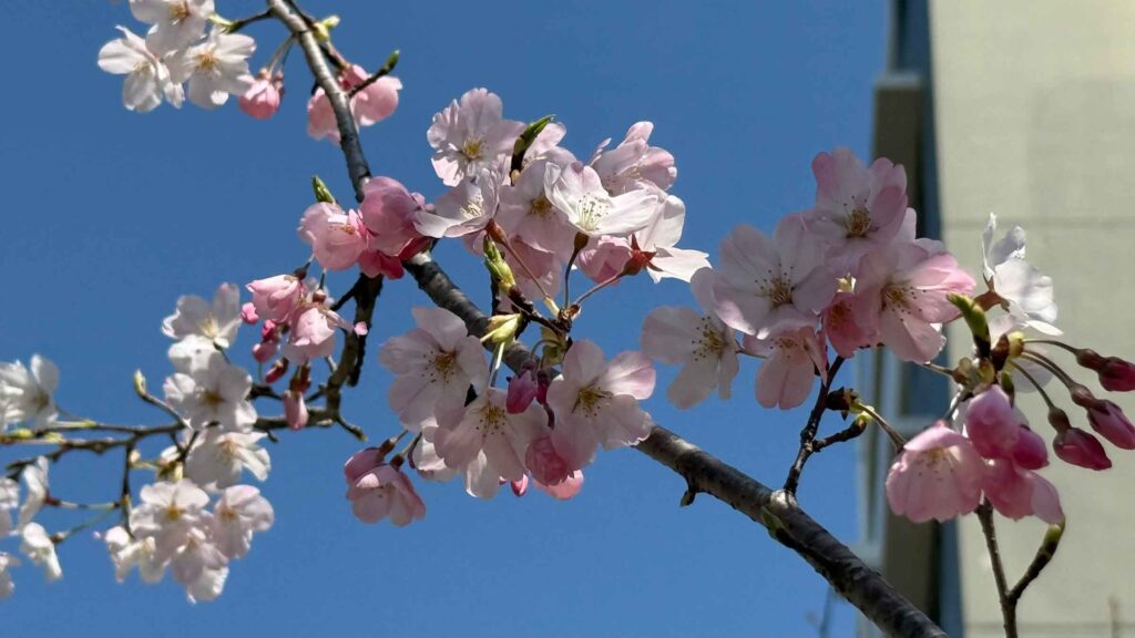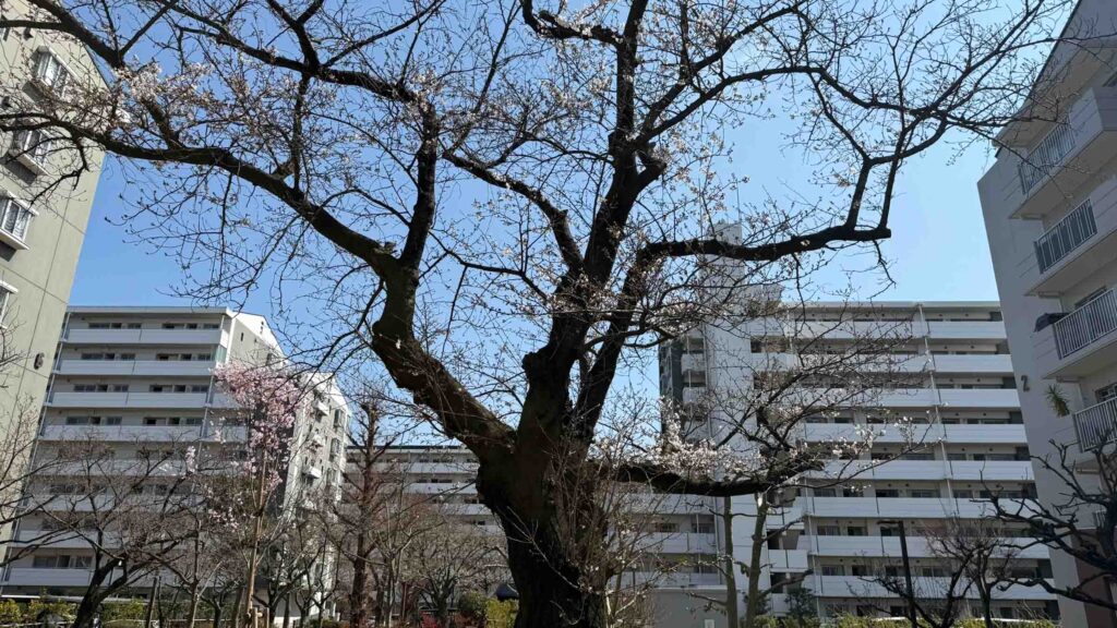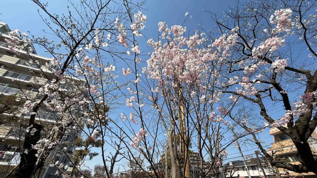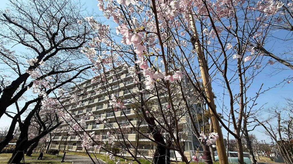 1号棟と7号棟の間の桜。