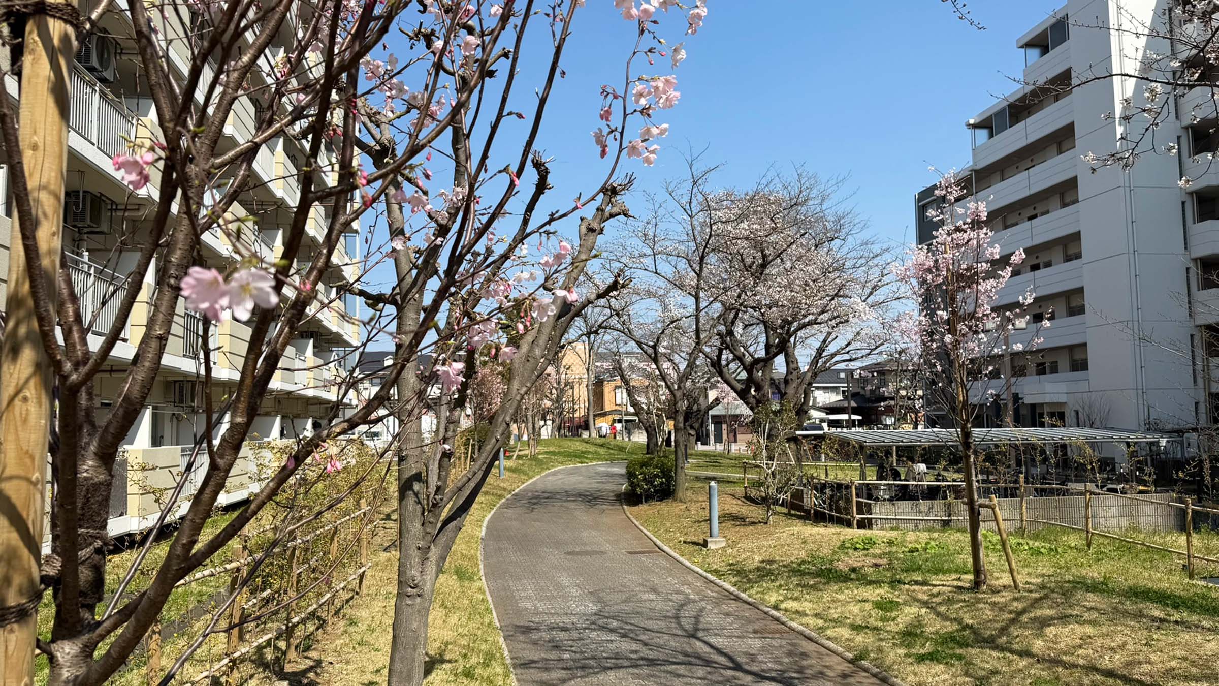 2号棟と6号棟間の桜。
