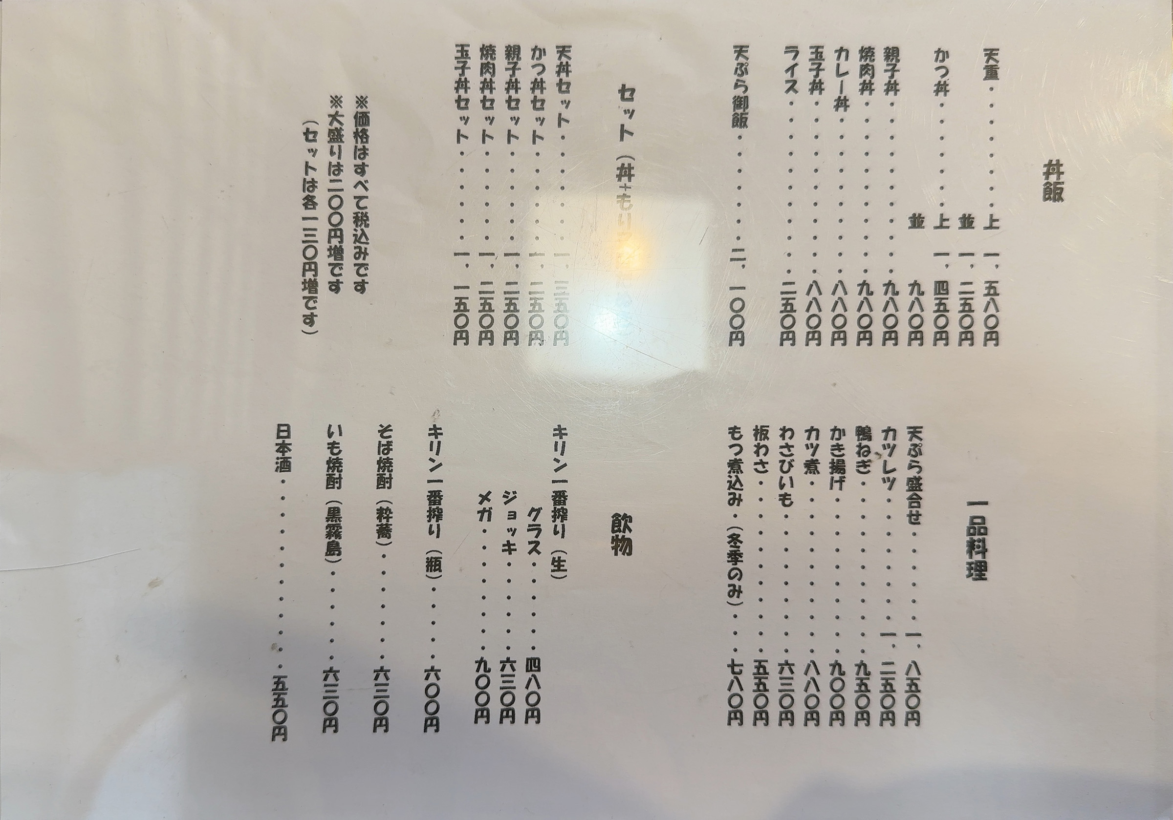 そしてこちらがお品書き。