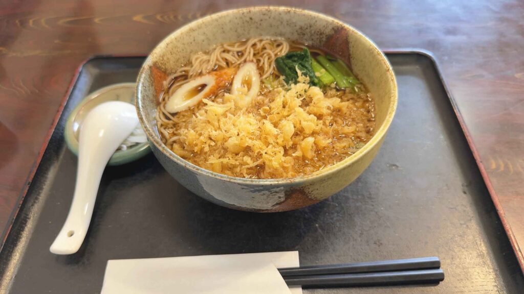 注文して5分も経たないくらいで美味しそうなたぬきそばが運ばれてきました